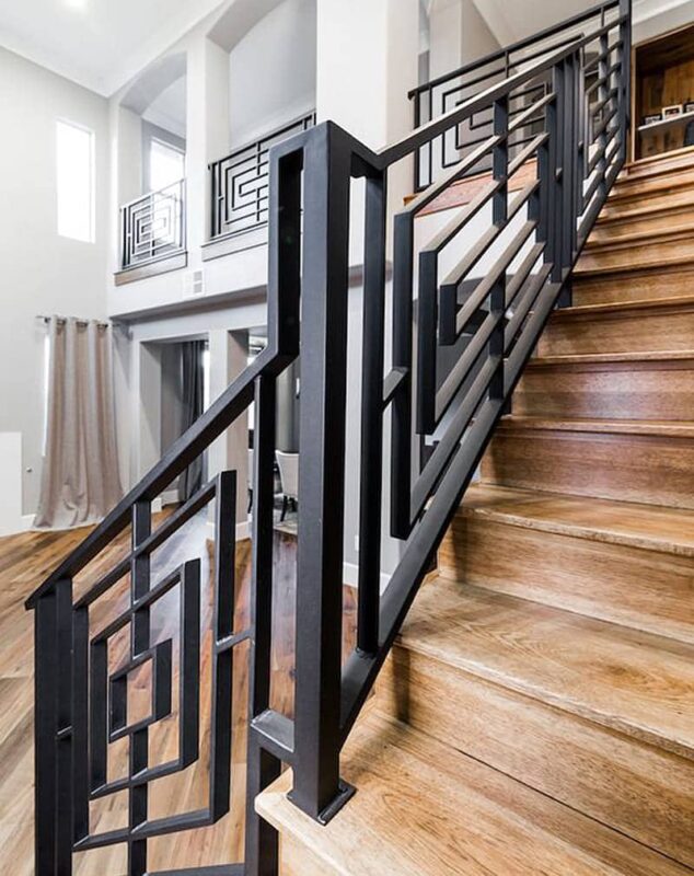 Ограждения со стальным нержавеющим тросом. Поручни дуб, термоясень, металлический профиль.