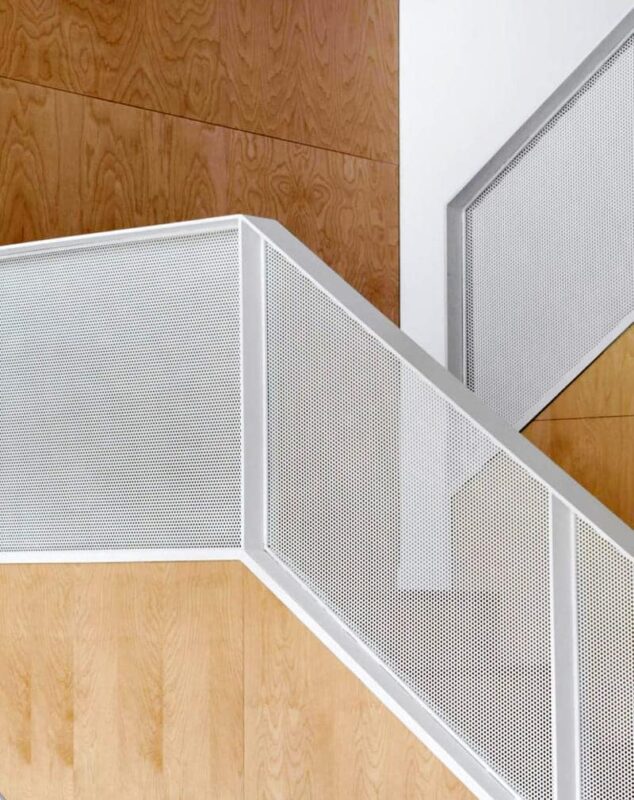 Лестница в стиле лофт на двойном ломаном косоуре из металлического листа 8мм. Косоур вырезан с косым рисунком. Ступени из дуба паркетной склейки как бы образуют вместе с подступенком букву Z. Перила из металлического профиля 40х20мм в стиле минимализм. Поручень из профиля 50х25мм. Покраска порошковая.