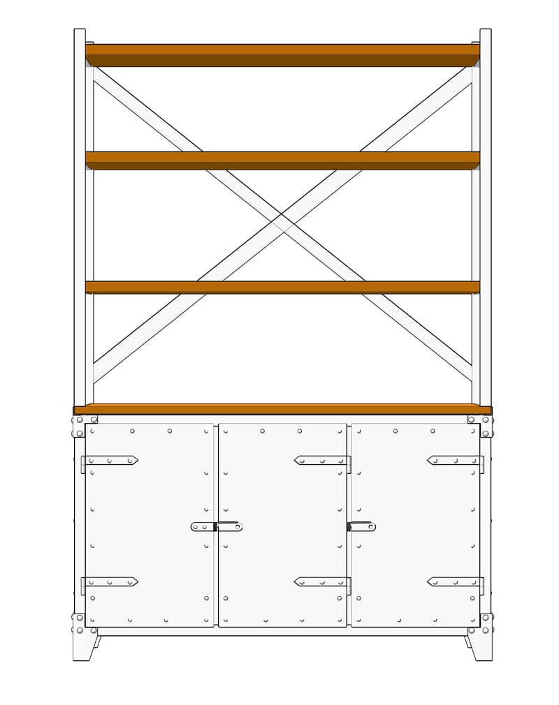 Шкаф полностью сварной. Доставляется покупателю в собранном виде. Стандартно имеет два цвета: белый и черный. Но вы можете выбрать любой цвет. А также выбрать другой вид дерева для полок.