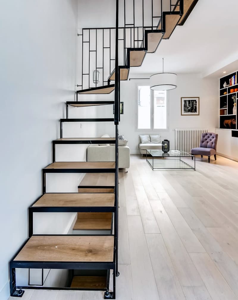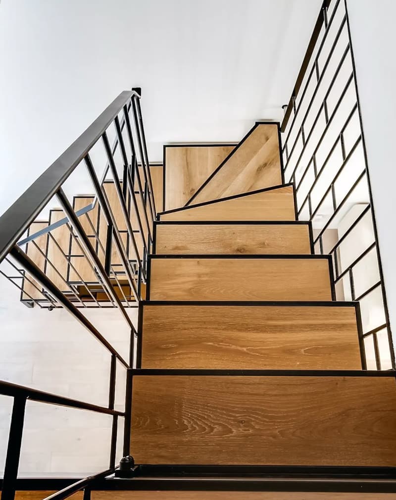 Монтируется в течении одного дня. Вы можете выбрать любой цвет для этой лестницы. Традиционно делается в черном или белом цветах. Покраска порошковая или чернение. Дерево обработано маслом и воском OSMO.