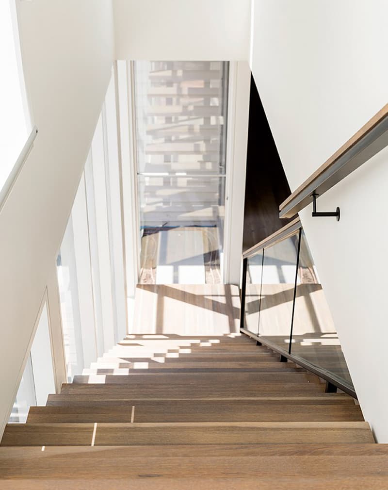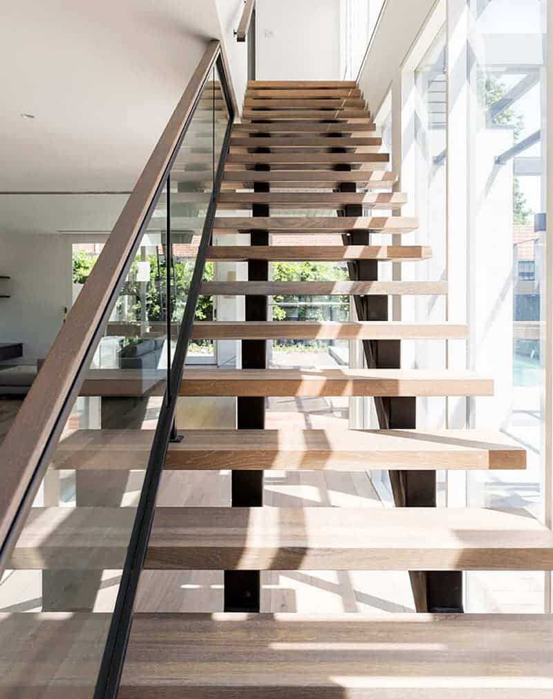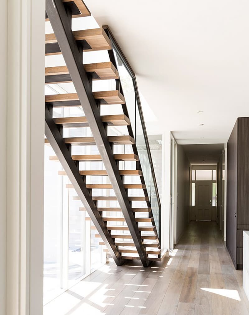 Такая лестница прекрасно впишется в любой классический или современный интерьер. Стекло придает воздушность конструкции.