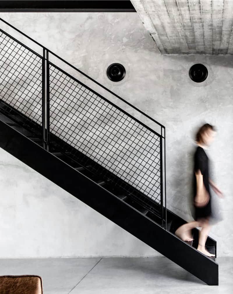 Классическая лестница в стиле лофт. Надежные и безопасные для детей перила из металлического профиля и ячейки.