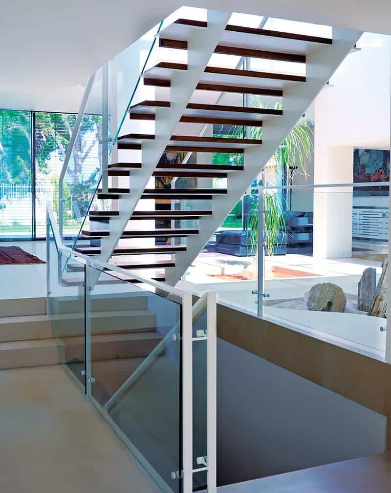 Основа для г-образных ступеней сделана из мощного листа металла. Она образует своеобразное держащее крыло для ступени и ограждений.