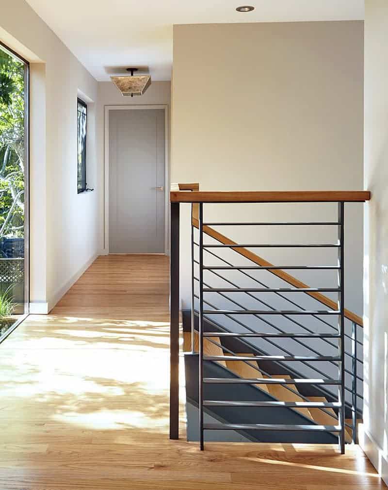 Такие перила хорошо впишутся в минималистский дизайн, сканди или лофт. Монтаж обычно занимает несколько часов. Лучше производить монтаж уже после чистовой отделки лестницы.