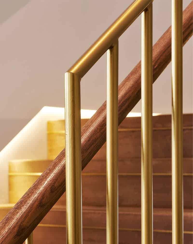 Монтаж перил обычно занимает несколько часов. Лучше производить монтаж уже после чистовой отделки лестницы. Тон дерева поручня выводится нашими столярами в тон ваших ступеней.