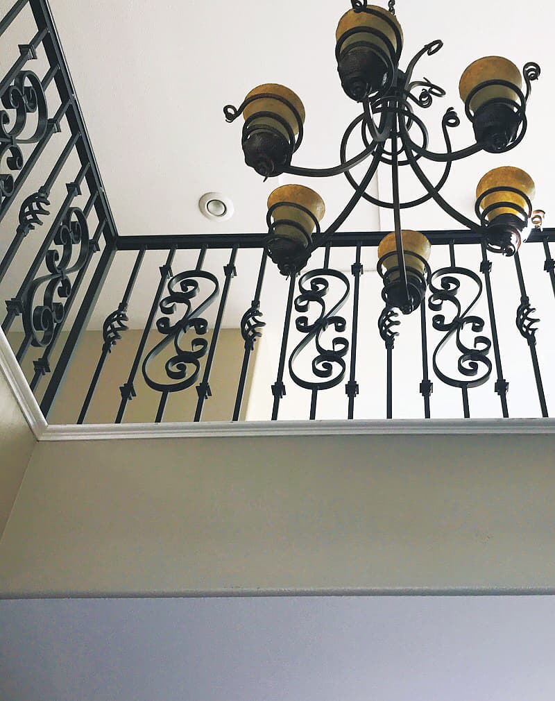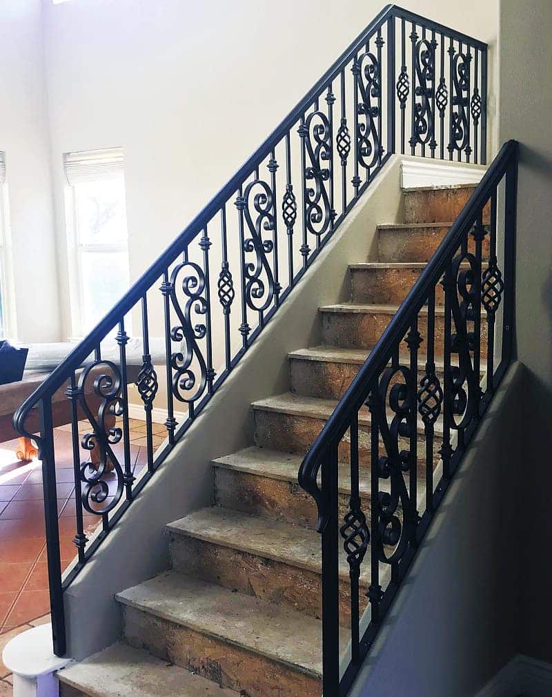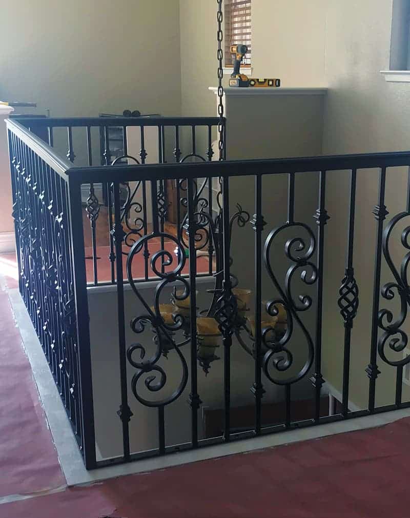 Монтаж перил обычно занимает несколько часов. Лучше производить монтаж уже после чистовой отделки лестницы. Можно состарить перила, применив патинирование металла.