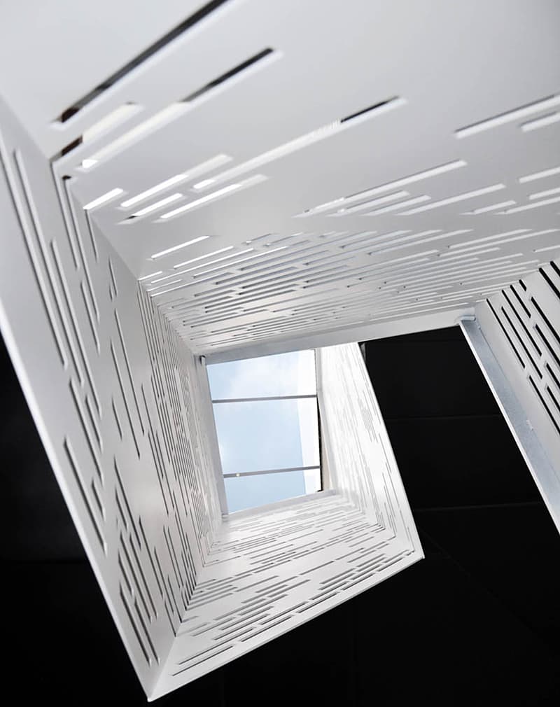 Рисунок этих перил — параллельные отверстия по типу перфокарты.