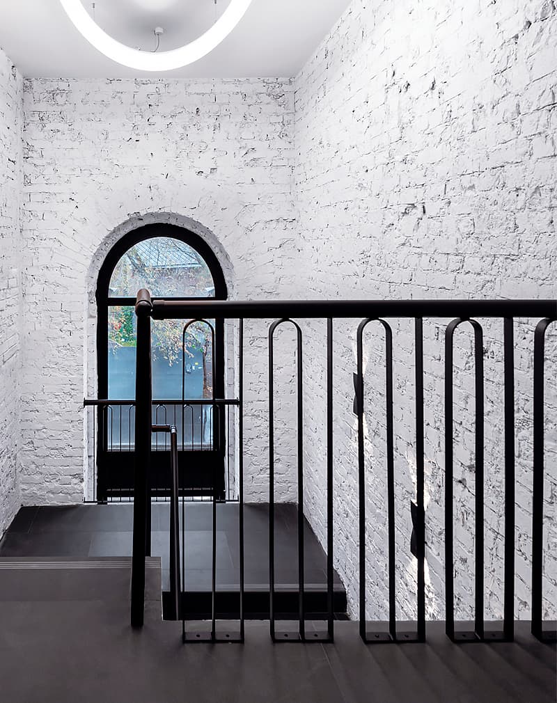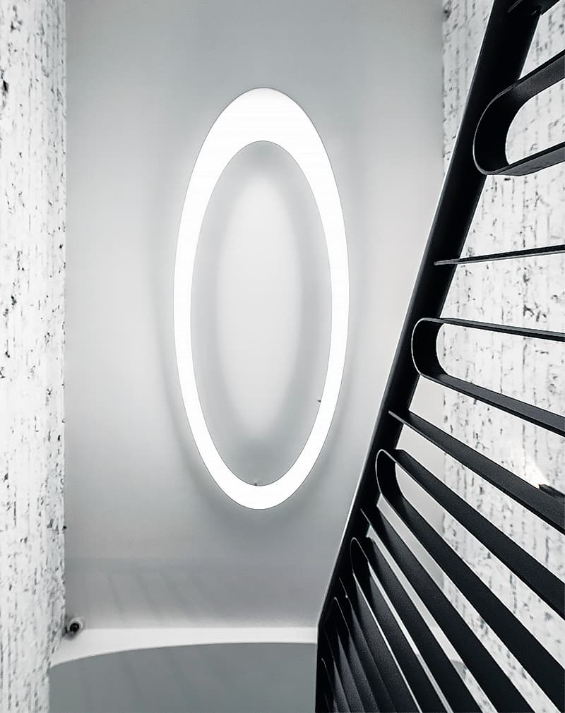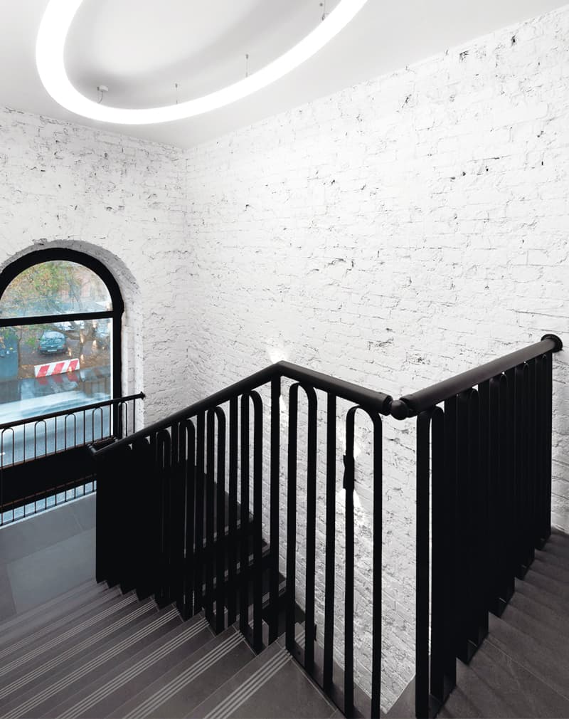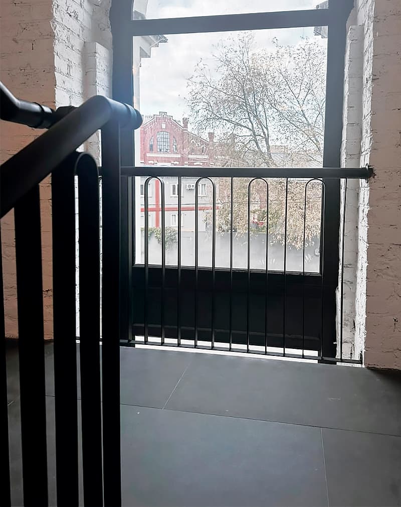 Перила с вертикальным арочным рисунком в стиле лофт-модерн. Данный вид металлических сварных перил подойдет для любых интерьеров. Внутреннее наполнение — арки из полосы 50х6мм. Поручень с шарнирными соединениями. Сделан из металлической трубы ⌀50мм. Перила покрашены порошковым способом.