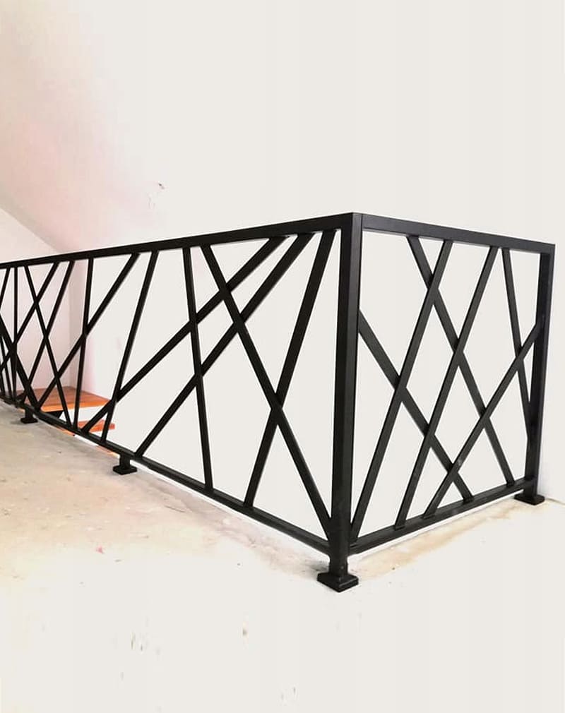 Металлические перила в стиле лофт с хаотичным плетеным рисунком. Сделаны из металлической полосы 40х6мм и профиля 40х40мм. Покраска порошковая.