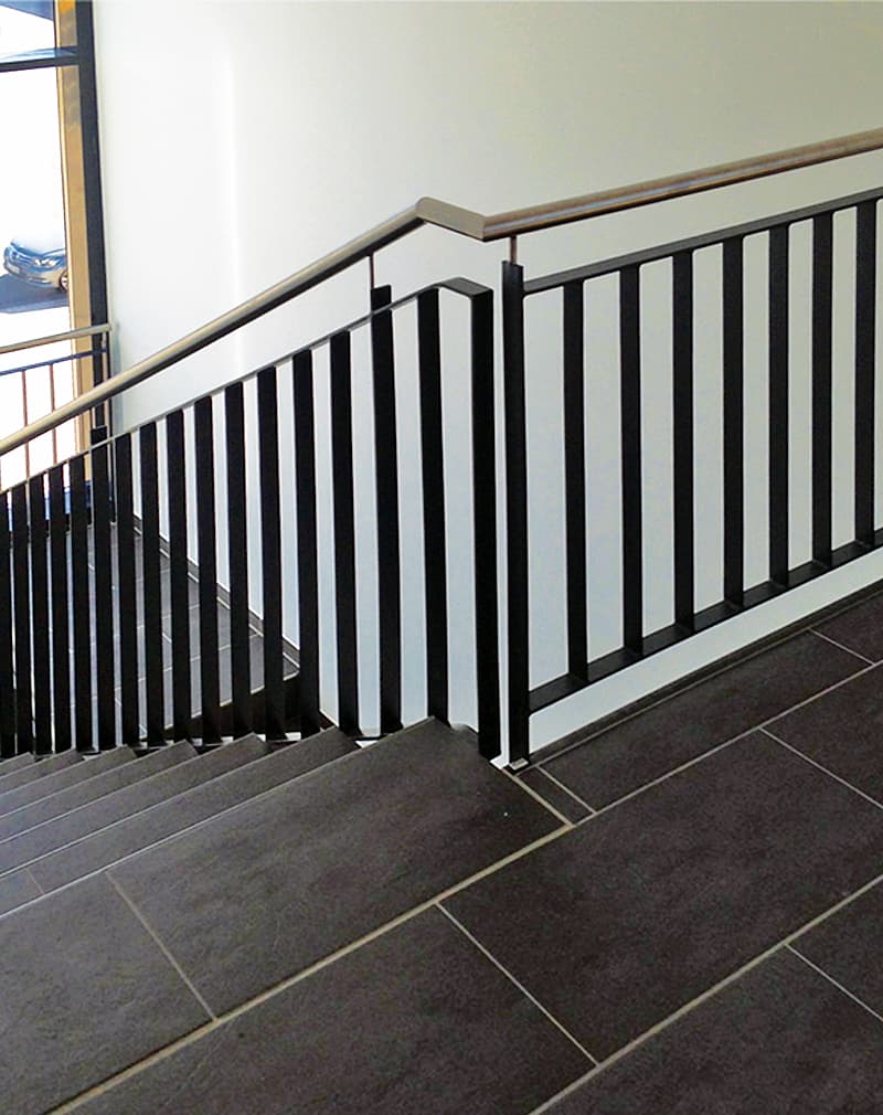 Монтаж перил обычно занимает несколько часов. Лучше производить монтаж уже после чистовой отделки лестницы. Вы можете выбрать любой цвет для данных ограждений, а также вносить любые изменения в конструкцию перед утверждением чертежей.