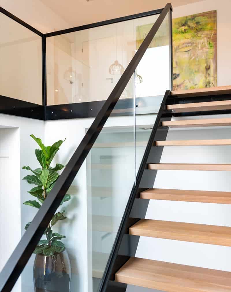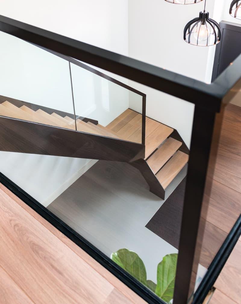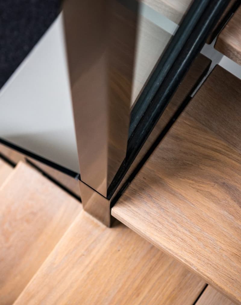 Перила сделаны из металлического листа 4мм в основании. Закаленного стекла прозрачного 8мм. Стойки и поручни металлический тонкостенный профиль 60х60мм. Покраска порошковая. Подойдут к любым интерьерам, от классики до лофта.