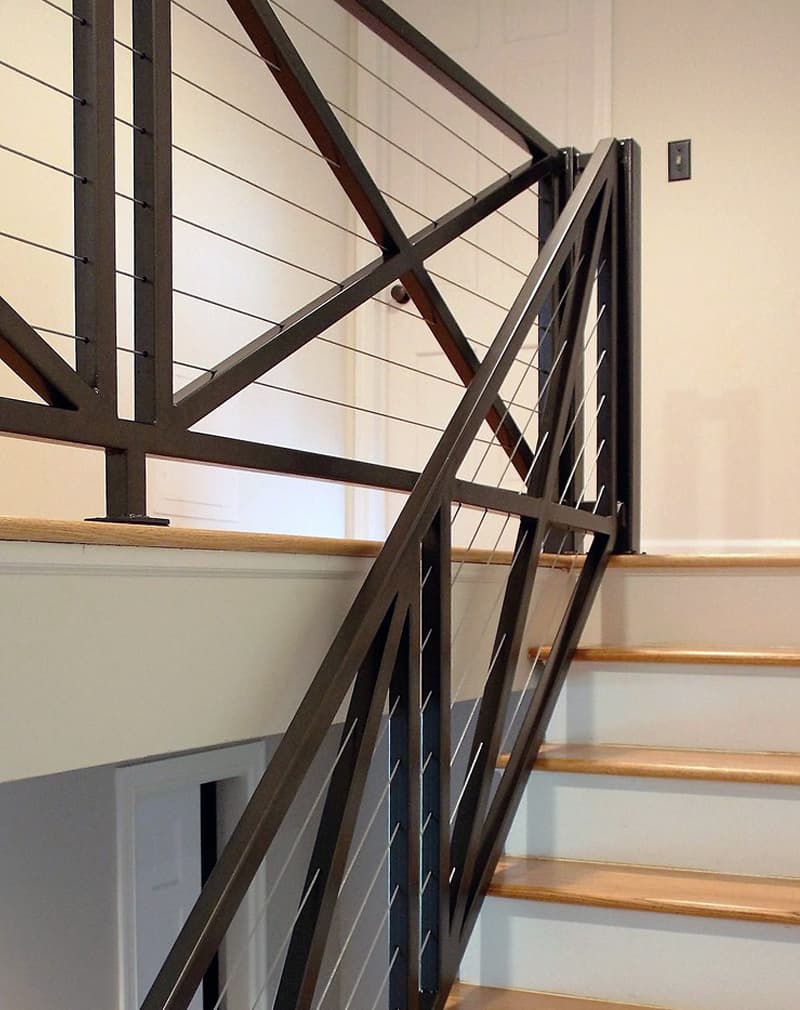 Подойдут к интерьерам лофт, индустриальный стиль. Монтаж перил обычно занимает несколько часов. Лучше производить монтаж уже после чистовой отделки лестницы.