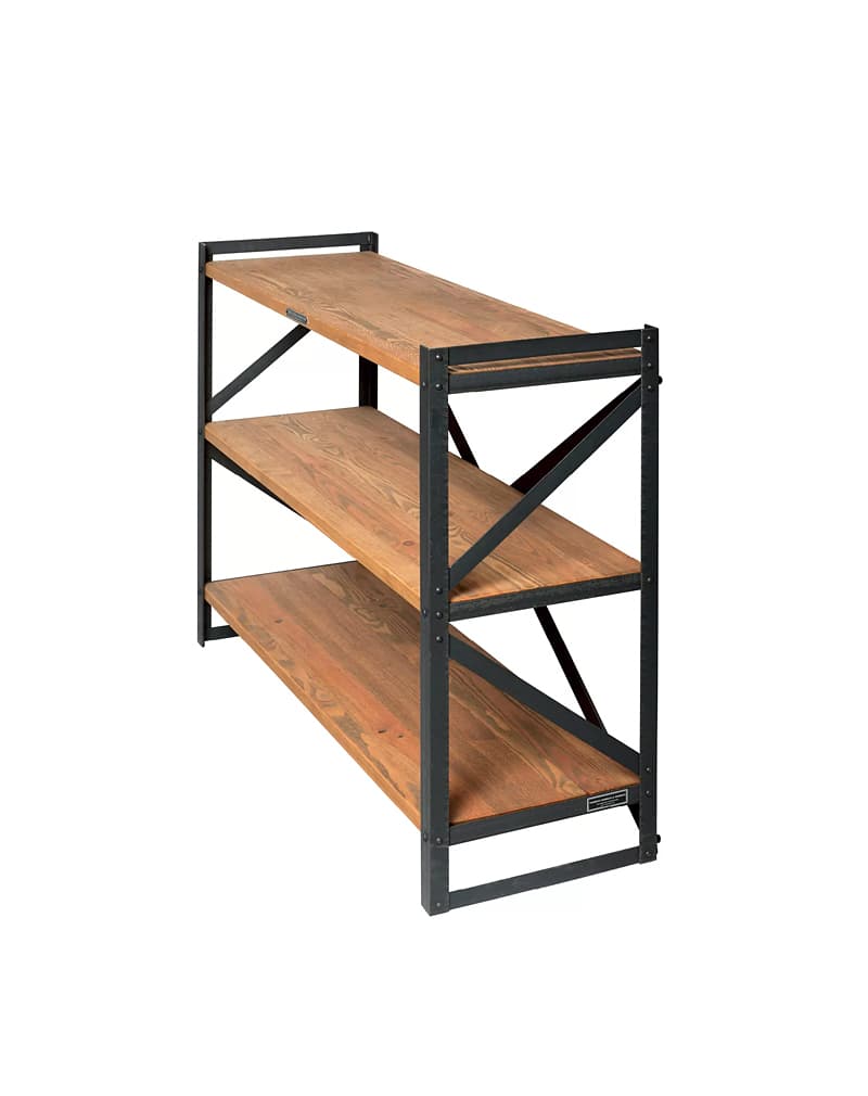«Классик Мини 140» это лофт-стеллаж высотой 92см на основе из металлического уголка 32мм. На равном расстоянии расположены три полки из сосны клееной, обработанной маслом и воском OSMO. Боковинки стеллажа скреплены диагоналями из полосы 30х5мм и проклепаны мебельными болтами. Для жесткости сзади имеется крестовина из полосы 40х6мм. На ножках стеллажа пластиковые накладки.