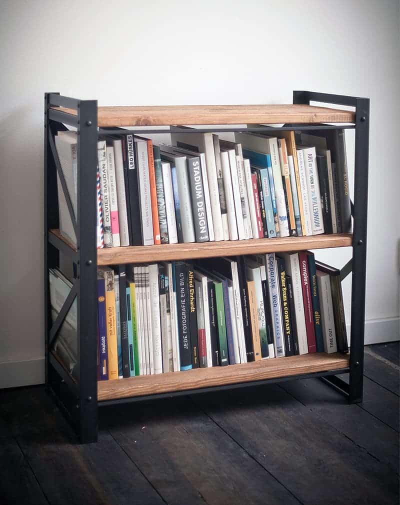 Стеллаж «Классик Мини 80» сделан из металлического уголка и полосы, проклепанных стильными мебельными болтами. Полки из мебельного соснового щита, покрытого маслом и воском. В отличии от многих мебельных фабрик, компания «La loft» предпочитает использовать натуральное дерево, а не ДСП или МДФ.